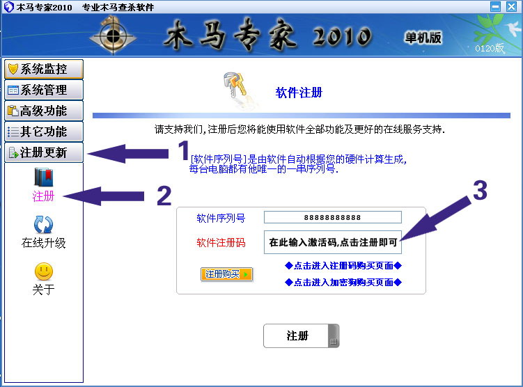 1.免费下载软件安装. 2.进入注册页面网上支付 3.得到注册码输入成为注册用户.